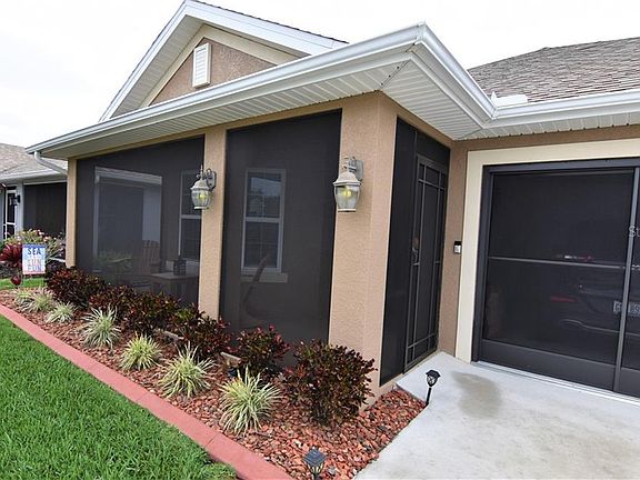 Immaculate & meticulously maintained Pool Home situated on Alligator Creek in the Friendly community of Creekside. This beautiful home features an open design with high ceilings and an extended great room area adding an approximate 91sf to living space. The Great room encompasses the Open kitchen, Dining room & Living rooms, all overlooking the Sparkling pool & lanai. Perfect for entertaining family & friends indoors & out. The kitchen features beautiful solid wood cabinets & breakfast bar all with granite countertops & complete with stainless steel appliances. Also, a split bedroom design with guest bedrooms & bath in the front of the home, and spacious owners suite with large private bathroom featuring a 5 ft walk-in shower, solid wood vanity, 2 sinks and granite top, a private w/c and spacious walk-in closet in the rear of home. There is ceramic tile throughout and carpeting in all bedrooms. The extended 10x14 patio under roof & Stunning Pool & Screened Lanai overlooks a nature Preserve and Alligator Creek with lush natural Florida Landscaping as the back drop. Relax in the Heated pool that features seating with therapy jets and a sun deck with bubbler. The huge lanai area is great for entertaining and enjoying outdoor Florida Lifestyle. The lawn features St Augustine sod, an irrigation system, low maintenance landscaping & Palm tree in the front of home, an extended driveway with pavers & a paver walkway to lanai for outside pool access. The front porch has a screened enclosure & there is a sliding screen door across gargage opening. There are sidewalks throughout the community, underground utilities, & a playground. Schedule your showing today!
