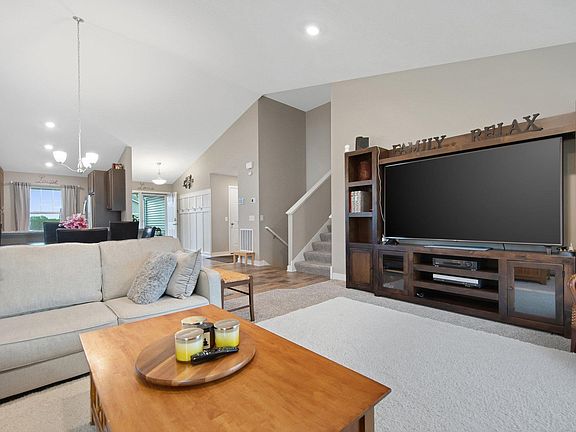 This stunning home, built in 2020, features a spacious cedar front porch and a 3-car garage accented with stone. The main floor boasts a vaulted ceiling and a beautiful kitchen equipped with stainless steel