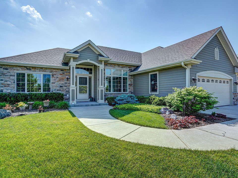 Beautiful 4 bedroom Executive home in Village Green subdivision! Immaculate split bedroom ranch featuring 3 bedrooms and 2 full baths on the main level, as well as a finished basement w/ fourth bedroom and full bathroom. Other features include a large eat-in kitchen w/ granite tops and stainless appliances, formal dining room, spacious living room w/ fireplace and abundant natural light, master suite w/ walk-in closet and en suite bathroom w/ his and her vanities and large soaking tub, hardwood floors, huge rec room w/ bar, 3 car garage, in-ground sprinkler system and large first-floor laundry room w/ additional cabinets/storage space. Ideal location on a cul-de-sac w/ beautiful views of the park/walking trail. Low Pleasant Prairie taxes and convenient access to I-94. Immediate occupancy.