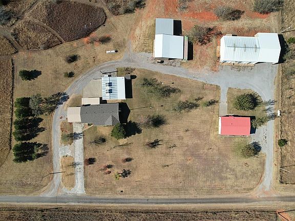 Rural Arapaho, OK Home & Acreage for Sale. This 10-acre property is surrounded by open grassland and features mature trees. The well-maintained 3-bedroom, 2-bath brick home includes an enclosed front porch with direct access to a storm shelter, two spacious living areas perfect for entertaining, and a 14' x 30' covered back patio for outdoor relaxation. The home was remodeled in 2007, with further upgrades including Geo Thermal HVAC and attic insulation added in 2019, a new heat pump water heater in 2021, and a new roof installed in 2024. A 24' x 24' carport and a Generac whole-house generator add convenience and reliability. Additional improvements include a 24' x 26' metal garage with an 18' wide x 7' tall overhead door and a 12' x 30' enclosed room with sliding glass doors on the north, west, and east sides. Outbuildings on the property include a 24' x 40' metal building with two 12' x 12' overhead doors, an attached 23' x 40' lean-to on the north side, a 40' storage container, and a 30' x30' equipment shed attached to the west side, as well as, a 40' x 60' metal building featuring a bathroom, in-floor automotive lift, two walk-through doors, three 12' x 12' garage doors, 14' side walls, and a large sliding door on the south end. A 33' x50' lean-to is attached to the north side, providing even more covered space. This Custer County, OK property also includes a 30' x 50' climate-controlled shop equipped with heating and cooling, a small kitchenette, a bathroom, a storage room, and a 15' overhead garage door. The space is designed for easy conversion into an efficiency home. This Arapaho, OK property is tailor-made for a home-based business, commercial operation, or anyone needing workspace with substantial flexibility and utility. This Western Oklahoma property offers a rare combination of living comfort, storage, and functionality—ideal for anyone seeking a spacious and versatile homestead.