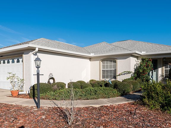 EXCELLENT WAKEFIELD MODEL HOME WITH 2 BEDROOMS, OFFICE/DEN THAT CAN BE USED AS A 3RD BEDROOM, 2 BATHS AND 2 CAR GARAGE. NEW TILE FLOORS IN LIVING ROOM, KITCHEN, DINING ROOM AND OFFICE/DEN. KITCHEN WITH ALL NEW APPLIANCES THAT ARE STILL UNDER WARRANTY, NEW GARBAGE DISPOSAL AND SOME NEW FANS. THE TWO CAR GARAGE WITH WORK BENCH, STORAGE CABINETS AND WATER SOFTENER. LOCATED ON OCALA'S PREMIER 55+ COMMUNITY , GOLF CART ACCESS TO TWO SHOPPING CENTERS.