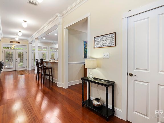PRICE IMPROVEMENT! NEW FORTIFIED ROOF BEING INSTALLED 08/24. Welcome to Southern Living, where porches are grand & living is easy. Designed by an architect & custom built, with gracious one level living in mind. Overflowing with elegant details, 10' ceilings, storage galore & fine finishes such Anderson windows/doors. Curb appeal abounds with lush landscaping covering close to 2 acres, circular drive, broad front porch and double entry door. A side entry garage has extra space for parking. warm Brazilian cherry hardwood floors flow from the entry to the banquet sized dining room, office, powder room, kitchen & rear entry hall. A designated office makes it a pleasure to work from home & features abundant built-in bookshelves. Visualize it as a music or art room with a view of the grounds. The oversized great room is anchored by a gas log fireplace & open to the kitchen, an extra-large breakfast area or sunroom and wet bar. Restful primary en-suite is relaxing & spacious with a door leading to the huge covered back porch overlooking a park like setting. Two additional bedrooms are also en-suites and a 4th can function as an office, nursery or additional guest room. Climate controlled storage is located in the garage, plantation blinds are on all windows, plus a whole house generator fueled by a buried propane tank offers security in power outages by providing 25,000 watts to the home. Twice per year service agreement with Baldwin Heating & Air. New Grinder pump April, 2024. Home is pre-wired for security, and smart home technology ready offering a blue tooth surround sound system with volume controls in every room. Bluetooth Arlo exterior security camera system. HVAC compressor replaced 09/2022 & on service agreement with Baldwin Heating & Air. Sprinkler system on well. Easy boating with Perdido Bay & Lillian Boat Launch only 3 miles away. Close to Pensacola, Elberta, Foley & OWA. Buyer to verify all information during due diligence.