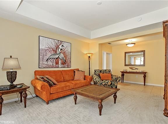 Beautiful First Floor Furnished End Unit with 2 bedrooms, 2 baths and 1 car garage and screened lanai with view of lake. Don't fight the steep stairs to a upstairs unit when you walk into your 1st floor unit and walk out your screened lanai to sit by lake! Location close to International RSW Airport and the beautiful beaches of Southwest Florida along with many places for shopping and dining options makes this a desirable place to call home or as a vacation homes. Beautiful resort style pool and clubhouse within gated community.