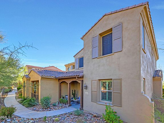 McDowell Mountain Preserve is your backyard to this highly desired end unit with The Gateway Trail just a few steps outside your door. This stunning kitchen is accented with beautiful granite, white shaker cabinets and opens to the great room. One guest suite is located on the main floor. The side courtyard has a new pergola and water feature for sunset wine and morning coffee. Upstairs, your primary suite has a deck showcasing Camelback and Mummy Mountains. The laundry room is conveniently located upstairs, along with another spacious guest suite. This gated community is central to EVERYTHING.