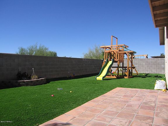 For more information on this property, contact the Listing Agent, Dyann Fairchild-Miller at (520) 918-3719 or dyannfm@LongRealty.com. A gem in Rita Ranch! PRIVATE backyard with gorgeous sunset views! Greenspace & walking path beyond wall. All pleasure no work w/high quality synthetic turf, 5 yr warranty. Super nice playset can stay or be removed. Tiled covered patio. 4 BEDROOMS, vaulted ceilings, remodeled kitchen. Spacious feeling as you walk in & line of sight takes you to relaxing view of greenery beyond backyard wall.