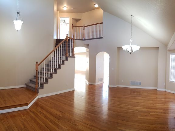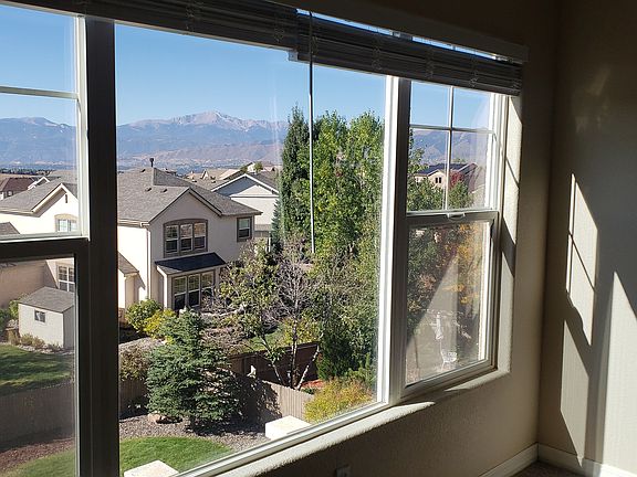 Prime location in school DISTRICT 20. A Campbell Home in PINE CREEK, a golf course community development in Briargate area. Relaxing Views of Pikes Peak from all 3 levels. LANDSCAPE MAINTENANCE INCLUDED IN RENT Breathtaking entry with high ceiling and second floor balcony. Main level made for entertaining/ family time. Newly polished hardwood floors, beautiful gas fireplace in family room. Spacious kitchen, plenty of cabinets/storage! Large walkout basement. Large deck on main level for outdoor enjoyment in every season. Space for firepit on patio. New air conditioner! Rooms on second level with one room and bathroom in the basement. New appliance includes hot waterheater to handle larger family size. LARGE BACK YARD for leisure enjoyment and family time. Close to Air Force Academy Base - 10min drive to South Gate, Pine Creek High School, Challenger Jr high, and Mountainview Elementary schools within - 5min drive in neighborhood. Grocery stores, shopping, restaurants, movie theaters, and entertainment with 5-10 min drive. Community gatherings at neighborhood park during several major holidays with food and activities. POOL /LIFETIME FITNESS nearby less than 5min drive. MASSIVE PARK within walking distance to enjoy several playground equipment areas, splash park, covered pavilions, restrooms, soccer fields, basketball/ PICKLEBALL COURTS, and walking trail. Walking, running, and biking lanes. Hospitals, dental clinics, and other specialty clinics nearby. Close to interstate 25. Castle Rock outlets within a 40-minute drive. Prime location for active lifestyle. Rent includes landscape maintenance.Apply on website: valoreandco.