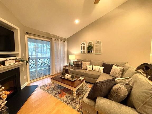 CONDO. Prime location in Chapel Hill/Durham area convenient to UNC, I-40, Southpoint, Friday Center, shopping, dining & health services. This is an owner occupied, upper level unit in excellent condition. 2 bedrooms 2 baths, each with walk-in closet. Open living/kitchen area with cathedral ceiling, electric fireplace, granite counter tops, SS appliances, & access to your private screened porch. Laminate flooring throughout with ceramic tile in bathrooms & laundry. Laundry room has additional cabinets & pantry shelving. Large entry porch with private storage room. Located in the Downing Creek Community offering a community pool, tennis court, pond & walking trails. New HVAC in 2022. Owner is a licensed NC realtor. Shown by appointment only.