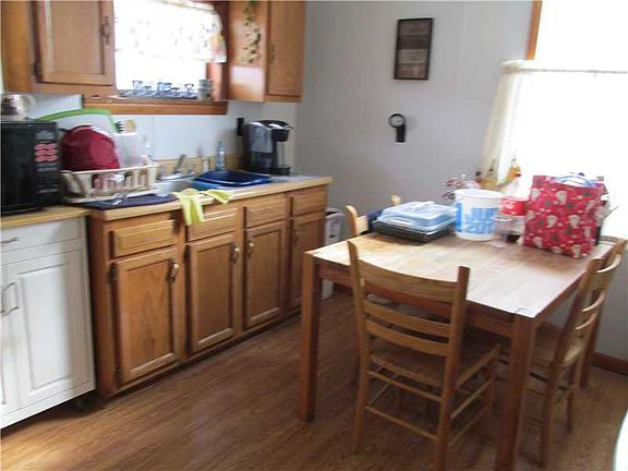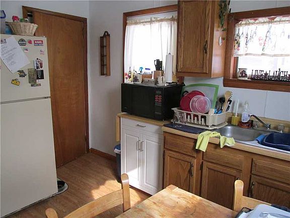 Roof 1 year old, new gas hot water tank, oak kitchen cabinets, storage shed glass block windows in basement.