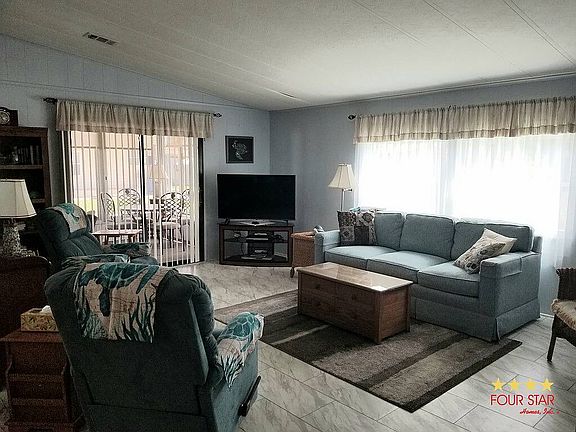 Welcome to your charming Palm Harbor home situated on a perimeter lot with a private back yard in The Grove, a vibrant 55 plus pet friendly community. This beautifully maintained two bedroom two bath home is being offered fully furnished and truly move in ready. Recent updates include new double pane windows, a 2024 air conditioning unit, a newly screened lanai, and an air conditioned front porch. The home also features a handicap accessible ramp at the front entry, vaulted ceilings, and luxury vinyl plank flooring throughout the living areas. The dining room includes a large table and a built in china cabinet, perfect for displaying collectibles and storing dishware. The kitchen has been updated with new soft close cabinetry. An interior utility room with full size washer and dryer adds convenience. Both bathrooms offer walk in showers. The spacious primary suite overlooks the private back yard and includes an ensuite bath and generous closet space. The guest bedroom is also spacious with ample closet space. An oversized storage room off the lanai adds even more functionality. The custom embossed driveway and lush landscaping provide great curb appeal. Just a short walk from your front door, enjoy the communities resort style amenities including a heated pool, hot tub, fitness center, bocce ball, shuffleboard, horseshoes, cornhole, billiard room, library, coffee bar, and outdoor grilling area. Stroll along beautiful lakes with fountains or take part in daily card games, planned events, and social gatherings at the community center, a great place to meet new friends. The Grove is a well maintained community ideally located near shopping, dining, beaches, golf courses, SRQ airport, and attractions such as LECOM Park, home of the Pittsburgh Pirates Spring Training. World class parks and recreational options are also nearby. Call today to schedule your personal showing of this delightful move in ready home.