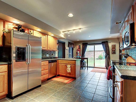 Beautiful, big and sprawling all brick ranch with so many awesome features and upgrades. Sunk-in living room and master bedroom. Large master suite with huge "brand new" walk in shower and "other" room is a 9 by 10 walk in closet. Nicely finished basement includes a theater room with a projector TV that can stay, wet bar area, family room, large full bath with both a large whirlpool tub and shower, and 3 rooms that could be possible bedrooms, den, or office. New stamped patio, new paint, and back-splash. Main floor laundry hookups in guest bath closet--just need a dryer vent installed. Water back up sump pump. Large oversized 2 car garage. TV in workout room can stay. A solid well built brick home with a ton of square footage for a fantastic price! Don't miss out on this great home.