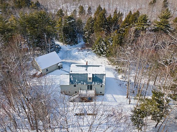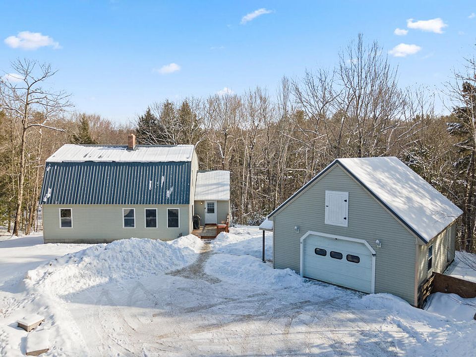 Welcome to your private five-acre retreat in Poland, Maine. This charming 3-bedroom, 2-bath home is nestled on a wooded hill, offering peace, privacy, and beautiful seasonal gardens filled with Japanese maple, dragonflies, and vibrant blooms. Enjoy an open first floor living space with wood-burning fireplaces, a first floor bedroom, a separate two-car garage that has been used to run a business from previously, a wired chicken coop, and a flexible walk-out basement space perfect for an office or guest area. Close to local lakes and outdoor recreation, with town approval to build up to a 2,000 sq ft ADU on the property. Quiet, serene, and truly special with room to grow.