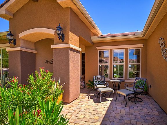 This gorgeous home has the SID paid off, all the upgrades and has incredible views in all directions. Starting with a custom walk way to the home and front courtyard for your enjoyment.The kitchen has granite tops,upgraded cabinets with pull out drawers, two ovens,micro wave.dish washer, lighting under cabinets,Kitchen counter seating. There has been crown molding added through most of the home. There is a formal dinning as well with trey ceilings..Many of the rooms have wooden shutters and ceiling fans. The Master Bedroom is very roomy. the master closet has plenty of room with custom organizers. The shower Has been redone with a combination of custom tile work and glass block. The garage has custom cabinets with the floor done in textured finish. The rear patio is covered with built in barbeque. There is a putting green and a fire pit as well. The view in the back yard is spectacular. The owners have added extra insulation, The drip system has an automatic fertilizing system, fenced in back yard with two gates for easy access to the outer yard. Rain gutters have been installed. Every thing about this home is first class. Come see this home for yourself and fall in love with it