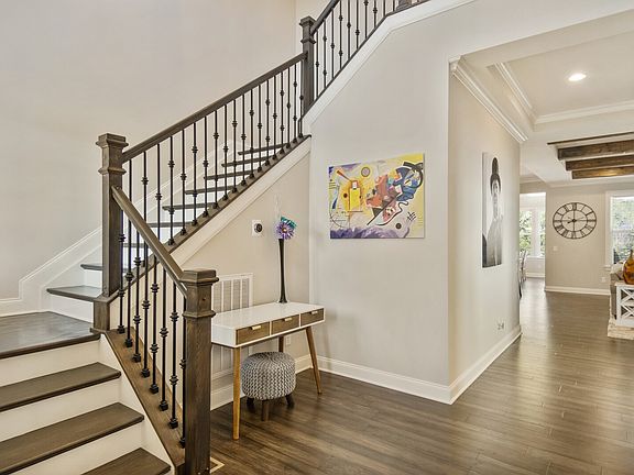 Exuding timeless luxury, this 5-bed, 5-bath residence is awaiting its new owner! Built in 2017, its grandeur is underscored by soaring ceilings & custom millwork & wood beams. The main floor features a magnificent primary bedroom & guest suite, offering convenience & privacy. Lavish amenities abound, including a chef's kitchen, complete with double ovens & magnificent granite island- perfect for entertaining. Expansive living areas & a covered back porch with a fireplace, ideal for year-round gatherings, overlook a private backyard with a wooded view, providing tranquility & seclusion. Upstairs, three additional bedrooms with en-suite bathrooms await, accompanied by a spacious bonus room, perfect for relaxation or recreation. Nestled in a coveted neighborhood, this residence epitomizes luxury living, offering prestige, privacy, & comfort. Complete with a three-car garage, this home seamlessly combines functionality with opulence.