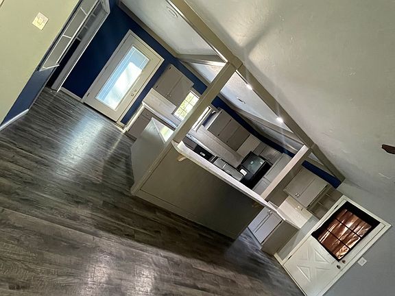 3 bed two bathrooms, New kitchen countertops, painted all interior new flooring. Has central heat and air. Includes stove, dishwasher and fridge.