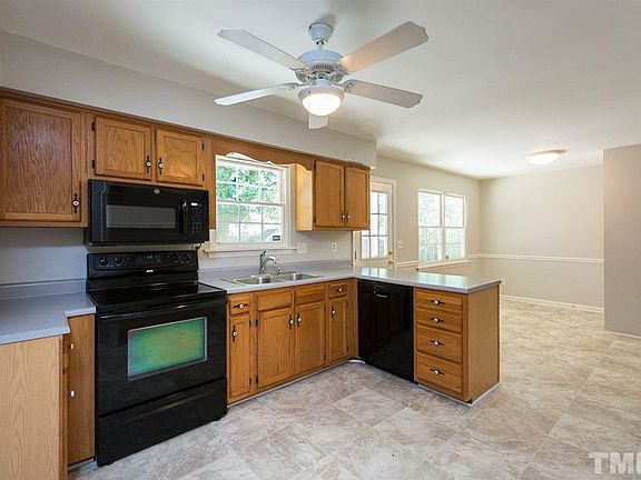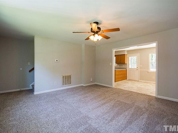 This Durham two-story home offers laminate flooring, a wood-burning fireplace, and a back deck.