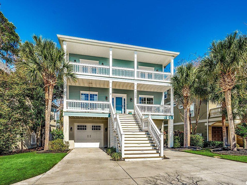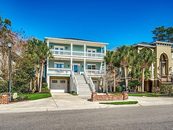 Stunning, 3 bedroom, 2 ½, bathroom home in the beautiful Sunset Harbour upscale community in North Myrtle Beach. This home has great curb appeal and so much to offer including four porches (two front, two back), a dozen mature palm trees and other extensive tropical landscaping, quiet backyard that backs up to a water inlet and county property so no one can build behind, hot tub, landscape pavers, lots of parking, brick landscape stanchions, wide circular driveway, gutters, Hardie Board siding, grand lighted stairway to the front door, gorgeous heart pine floors and tile flooring, two living rooms, dining room (flex room), 10” crown molding throughout and chair rail, wide baseboards, two natural gas fireplaces, elevator (recently serviced), flat ceilings, lots of natural light, nice fixtures, recessed lights, oil rubbed bronze hardware, roof/HVAC/Mini Split only 6 months old, gourmet kitchen, stainless steel appliances, Viking 6 burner natural gas range, stone backsplash, stainless farmhouse sink, deep double door pantry, standalone Icemaker, granite countertops, kitchen island, tankless water heater, coat closet, large bedrooms, extra-large top floor primary suite with access to the front and rear balconies with great views, huge primary closet with custom shelving, double sinks, jetted tub, separate shower, laundry room, second bedroom with walk-in closet, guest bedrooms have direct access to balconies, large (heated and cooled) exercise or flex room (32x11) on ground floor, 2 car garage with epoxy floors, and work shop. Sunset Harbour is in a perfect location on the Intracoastal Waterway with an owner’s clubhouse and pool on the waterway (just a few lots away), day dock, Boat/RV storage included in the HOA fee, boat ramp, neighborhood sidewalks, and beautiful common ground, all within a golfcart ride to the beach. All this with a great North Myrtle Beach location close to restaurants, shopping, entertainment, nightlife, and many golf courses. The home is in a very quiet and peaceful setting yet close to anything and everything anyone would want in a home. Priced to sell and motivated!