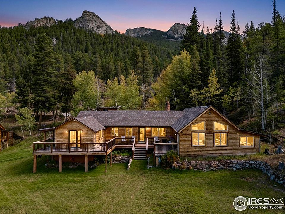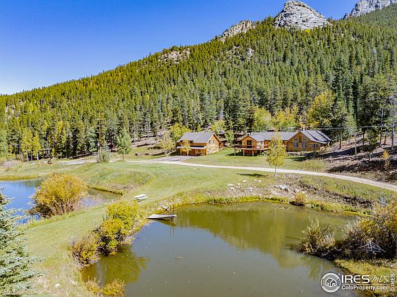 For the first time in decades, this extraordinary 102 acre mountain sanctuary is being offered - a true legacy estate set against the dramatic cliffs of Golden Gate State Park and bordered by National Forest, where miles of pristine wilderness invite endless exploration. Privately tucked away in a serene, sunlit valley on a private road, this secluded estate boasts 2 stocked trout ponds, breathtaking views of Long's Peak, The Sisters and the rugged craggy cliffs that tower above. This is a setting where generations of family memories and mountain adventures are waiting to unfold. The estate includes a 2,250 SF detached garage featuring a 2nd story apartment complete with a kitchen, bedroom and bath - ideal for guests or multi-generational living adding 864 SF of finished living space. A 2nd large outbuilding serves as a workshop with 2 additional parking spaces and a spacious upper level ready for your personal vision: studio, gym or creative retreat. The landscape offers a diverse mix of lush valley, open meadows and forested slopes, nourished by natural springs and a stream that support a thriving habitat for wildlife. From your deck, watch elk, deer, moose and even a majestic bald eagle as it skims the ponds for brook trout in your own private National Geographic moment. The sprawling ranch home features 3 bedrooms, 2 baths and a vaulted great room with T/G ceilings, exuding mountain warmth and rustic comfort. Comprising 5 separately deeded parcels, this property offers endless possibilities - preserve its grandeur as a single estate, develop additional residences or sell off parcels to suit your vision. A rare opportunity to own an exclusive Colorado mountain sanctuary of this magnitude - private, wild and profoundly beautiful - a place to build your family's legacy for generations to come. This remarkable property is a rare find in these mountains, yet conveniently located within an easy drive of Boulder, Denver, Nederland and world-class skiing.