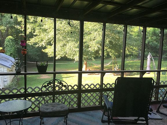 Huge screened in back porch width of house looks out onto large back yard with large wooded area. Cute house. Gas heat, water heater and oven. Has brand new gas insert in fireplace but not installed.