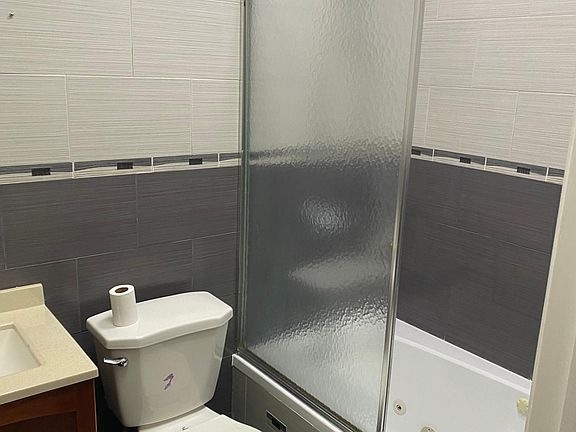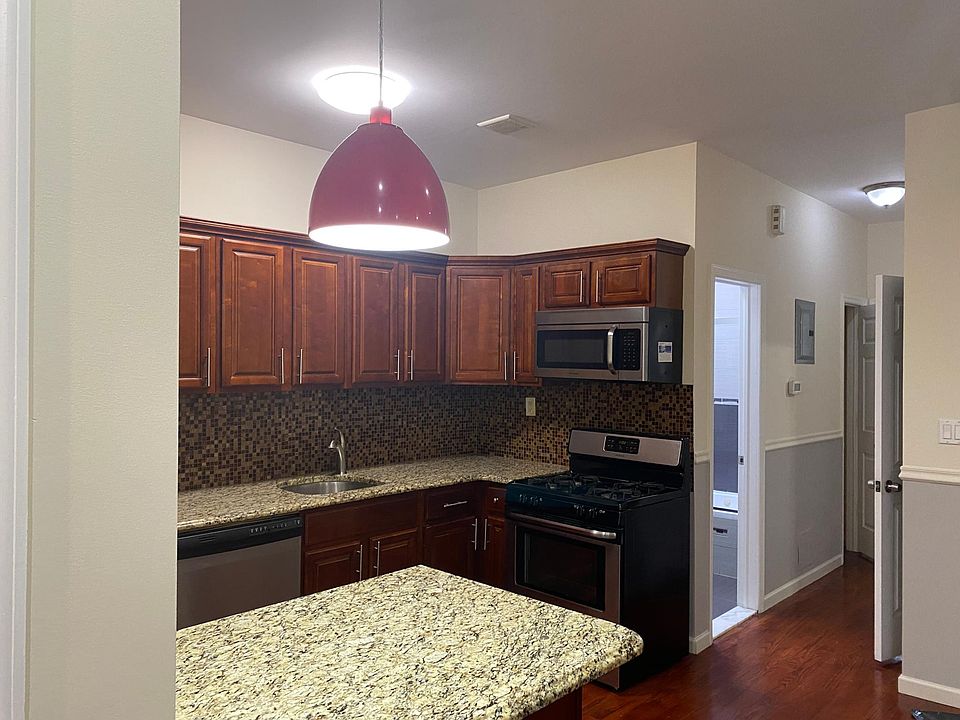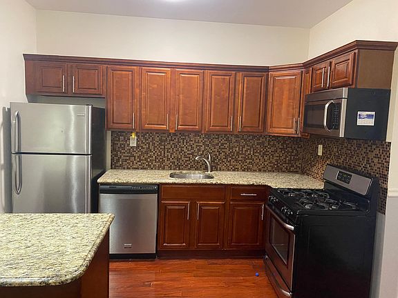 Modern three bedroom apartment on the second floor of a private house. Spacious living room with high ceilings and a ceiling fan. Open- concept kitchen with marble countertops and stainless steel appliances- including refrigerator, stove, microwave and dishwasher. Bathroom is renovated with a wonderful skylight. Two roomy hallway closets that are ideal for storage. There is a front porch and back balcony that are for the exclusive use of the tenant. Close to transportation- B6, B7, B46, B47, B82 and B103. Convenient to shopping and laundry. Come view this stunning apartment. Call Maria for details. Owner pays for water. Tenant pays for gas (including heat) and electric. No pets allowed. First month's rent, one month's security deposit and one month's broker's fee must be provided.