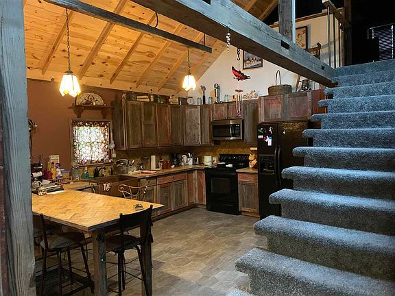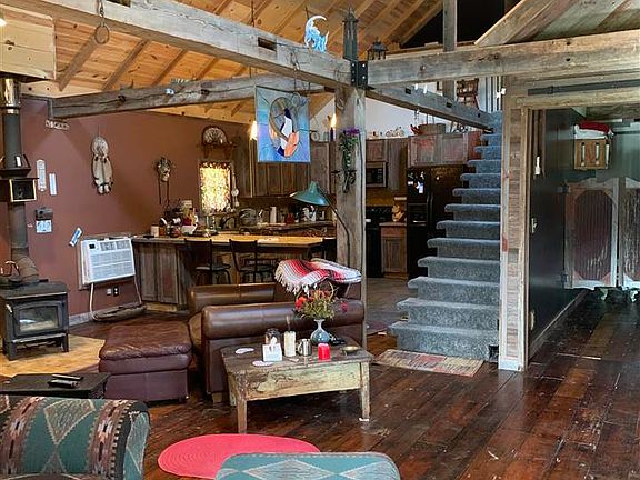 REDUCED! Trickle Inn to this one of a kind, custom built home on the east edge of historic Mount Carroll. Built in 2019, this corner lot home gives off a warm curb appeal with its reclaimed barn wood siding and an approximately 546 sq. ft wrap around, covered porch with a wheelchair accessible ramp. Unique touches can be found throughout this creative masterpiece including several beautiful stained glass windows, a pull rope to sound a church bell for a doorbell, and the highlight of the interior is an 8 ft patina windmill ceiling fan that not only is a neat aesthetic feature but also designed to push heat out of the vaulted ceiling space and back down into the living level. Inside, the kitchen and living room combo to make a great, open living space that offers modern living with a rustic feel brought out by exposed barnwood beams, barnwood flooring and a cozy wood burning stove. The entire main floor is designed to be handicapped and wheelchair accessible, including a spacious main floor full bath with a walk in shower and also a separate deep, clawfoot tub and main floor laundry. Upstairs is a 16X24 open loft bedroom with its own half bath, this loft sits above the 1 car attached and heated garage. This home will sleep several people even though its only one bedroom. Other exterior features include a half circle blacktop driveway and an additional shed that has been converted into a guest bunkhouse with an outside bar and firepit entertaining area, and space for your own small garden. The home is currently used as a primary residence, but could very easily be used as an artist studio, a thrifty shop space, or as an income producing guest rental as it is within minutes of many local attractions and less than an hour from downtown Galena. Put your creative mind to work and take advantage of this opportunity to make this one of a kind property your own! MOTIVATED SELLER!