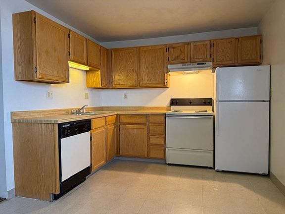 Refrigerator electric range dishwasherOff-street parkingCarpet and vinyl flooring