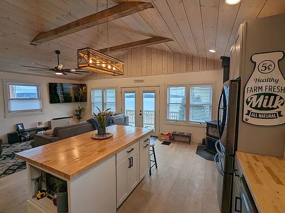 SHORT Term October - April- Fully Furnished- This captivating lakefront home offers spectacular views of majestic mountains and alluring lake that will rejuvenate your soul. The home is a two level ranch style with the main level consisting of a newly renovated kitchen with stainless steal appliances, gas cooking and lots of cabinets, living and dining area, the master suite features a walk-in shower and 2 large closets. The mail level offers a balcony looking over the beautiful Lake Champlain. The lower level offers two bedrooms both with TVs, a full bath with walk-n shower, laundry and a theater/ game room! 2 CAR GARAGE Owner pays water/sewer, trash lawn/snow and basic internet