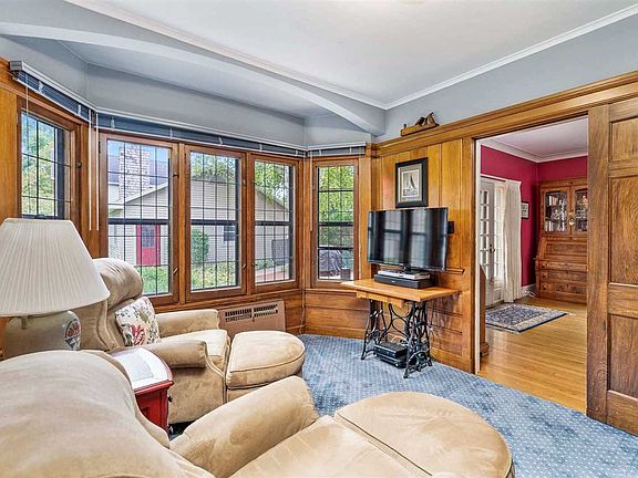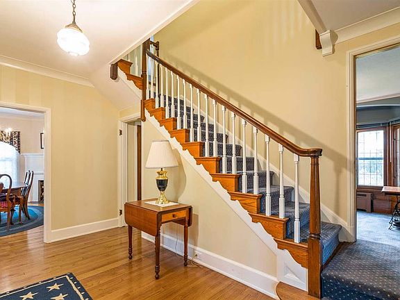 This Iconic colonial style home is located just a short walk to downtown Petoskey and the Petoskey Schools campus. The home features 5 bedrooms, 2 full baths and 2 1/2 baths along with a 3rd floor bonus room and a full basement. The formal dining room has it's own wood burning fireplace and there is also a cozy breakfast nook off the charming Amish built kitchen. The den is framed in solid cherry with a built-in bookshelf. The living room (with gas fireplace), dining room, kitchen and foyer all feature hardwood floors. The enclosed fenced-in back yard is beautifully landscaped and very private. Make this your home and stand proudly in your yard with your friends and neighbors as Petoskey's 4th of July parade passes by in review.