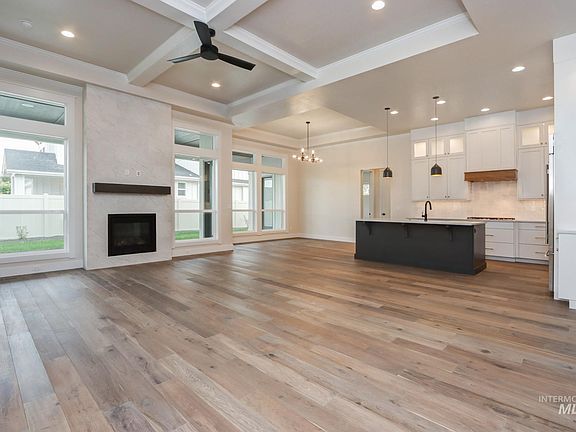 Come experience downsizing to One luxurious LEVEL designed by Venta Homes--The Oakley. Wonderfully equipped the kitchen boasts Wolf 5 burner gas cooktop and double wall ovens, SubZero frig and fantastic pantry w/ butlers area for appliances. The kitchen has cabinets to the soaring 10' ceiling, under and in cabinet lighting & a touch faucet. The office, great AND media/bonus rooms plus all bedrooms are 14x13 or larger! Quartz, tile, hardwood surfaces found though out along with stunning interior architecture as seen in the varied ceiling heights-10' throughout $ 11', 12’ coffers with 8' doors and dramatic millwork. ALL cabinetry is built dovetail & soft close doors and drawers w/ full extension. Covered back patio is oversized and stamped. The over 1150', finished, insulated and epoxied garage has its 3rd bay at 12x12x39' . Located minutes from shopping-COSTCO, restaurants, entertainment –The Village, Lakemoor and downtown Eagle. This home is Energy Star and HERS rated for the highest efficiency.