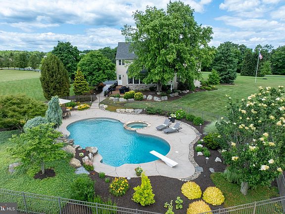 Nestled in the countryside surrounded by breathtaking views that stretch for miles, yet conveniently located near bustling towns, shopping, and all that Green Lane Reservoir and Park has to offer - fishing, boating, hiking and horseback riding, this luxury home offers the perfect blend of tranquility and accessibility, where every day feels like a vacation. View the video tour and floor plans to get an even greater sense of how beautifully the home flows! As if taking a cue from its address, Eagles View Lane, this property is a serene retreat where gentle breezes brush the lush expanse of lawn. It’s not uncommon for the homeowners to have spotted majestic Bald Eagles soaring overhead or perched in the towering trees that grace the front of the property. Whether you’re hosting a lively gathering or seeking a quiet break from the day’s hustle, your home and the sunsets will be the perfect backdrop for every moment! The expansive yard, picturesque landscaping, enclosed porch, and a pool are just a few of the stunning features that make this property a dream come true. Add to this a finished basement, inviting and perfect for games, gatherings, and movie watching. You will have endless opportunities for hosting parties and special occasions or enjoy a quiet evening dining and relaxing on the enclosed back porch. It will be your very own personal paradise! You will own 3.67 acres of property, and almost 3,500 square feet of living space on the main and upper levels, and approximately 735 square feet of finished space on the lower level, offering about 4,200 of living space featuring 4 bedrooms, 2 full baths, 2 half baths, a 3 car garage, front and back porches, and a 30,000 gallon heated swimming pool featuring a jetted spa, a diving board and a beautiful stone waterfall with grotto bench seating behind the waterfall. Evenings outside are made magical with the dramatic lighting provided by (2) 600-watt zones of Kichler exterior landscape lighting as well as a multi-color in-water pool lighting system. For cookouts there’s a composite lumber clad deck right off the back porch that features a piped propane connection for your grill, so you are always ready to cook up a delicious meal for you and your guests at a moment’s notice. The property easily provides ample parking for your larger parties. Throughout the years, this home has been meticulously updated and enhanced with a keen eye for detail. It now boasts high-quality premium finishes, state-of-the-art fixtures, and top-tier appliances, including a GE Café kitchen suite. For added peace of mind, there is even a generator that plugs into the home. The landscaping, professionally designed, complements the home’s elegance. Every improvement made over the years was guided by two principles: enhancing the home’s beauty and simplifying its maintenance. This thoughtful approach ensures homeowners can fully immerse themselves in the lifestyle offered by the property, from the inviting pool and porch to the expansive grounds. Live your life to the fullest! This is more than a home. . . it’s a lifestyle! A sampling of the list of improvements recently made are: a New CertainTeed Pro Series Roof (2023) and Leaf Gutter Guards, (2) HVAC Systems, Two Zones (2019), an Amish-Built Shed (2021) with Hardie Board Siding, Maintenance Free Doors, with Gutters & Downspouts, a Completely Renovated Primary Bathroom and Hall Bathroom - featuring Kohler Designer Series Vanities and Fixtures, Marble & Granite Vanity Tops, Glass Doors & Enclosures, and Light Fixtures, a Completely Renovated Enclosed Back Porch – featuring an Italian Tile Plank Floor, Stone Wall Base Inside & Outside, Maintenance-Free Posts & Transoms, Maintenance-Free Screens and Premium Screen Door, a New Pool Heater, an Epoxy Coated Garage Floor (2021) and (3) HAAS Insulated Designer Garage Doors, and GE Café Kitchen Appliance Suite. Make an appointment to tour this very special home today!