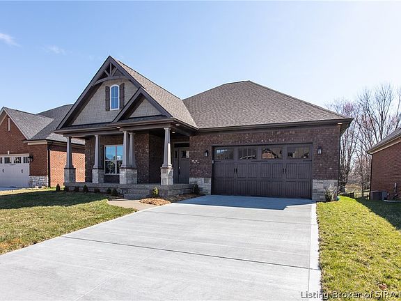 Open House Sunday 2-4. The WAIT IS OVER.....PATIO HOMES at GLENWOOD in FLOYD COUNTY built by Southern Indiana's PATIO HOME BUILDER, DISCOVERY BUILDERS. The CHURCHILL PLAN will not disappoint...Everything you need on 1-LEVEL, but with a Great Finished Lower Level for those Special Occasions. As soon as you enter the Grand Foyer you will recognize the Attention to Details....9' Ceilings, Crown Molding, Great Room with Triple Transom Windows and 12' Ceilings. Owner's Bedroom Suite large enough for a King Bed, Double Nightstands, and Triple Dresser. Designed with the Owners in mind....with a SPA Shower, Double Vanity, Commode Room, and Huge Walk-in Closet and Spacious Laundry Room with Sink & Cabinets for Storage. This Plan is Designed for LIVING...with Large Dinette that will seat (6), a 10' Kitchen Island that will seat (4) and is great for serving for parties, a Covered Deck for relaxing and a Covered Front Porch. The Lower Level is set up Great for those Big Gatherings...Holidays, Parties, and Big Games! There is a TV Area, Open to a Game Table Area, a Wet Bar with Granite Tops & Pub Table Area - Great for Gathering and Serving, as well as a 4th Bedroom, Full 3rd Bath for Out of Town Guests, if needed. Come See WHY DISCOVERY BUILDERS has a Reputation for Building Southern Indiana's BEST PATIO HOMES and Discover the DISCOVERY DIFFERENCE! Sq ft & rm sz approx. Listing agent part owner of selling entity.
