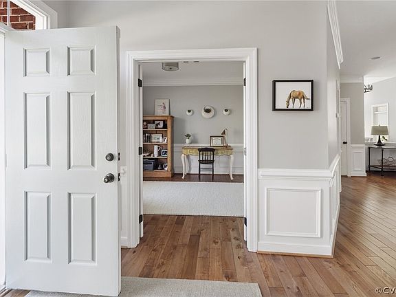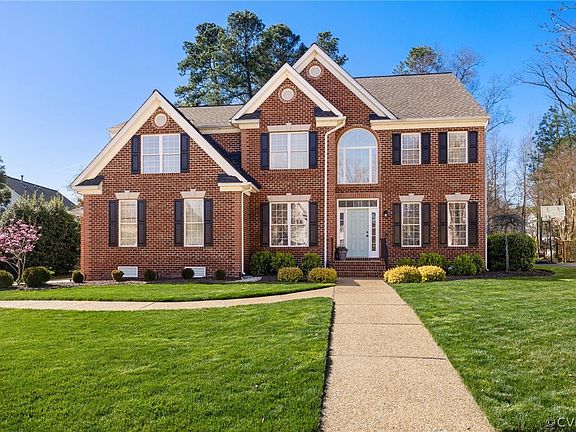 This beautifully updated & meticulously maintained brick front home is sure to impress even the most discerning buyers! From the moment you walk across gorgeous birch wood floors into the vaulted family room filled with natural light, you'll feel right at home. Cooking in your chef's kitchen is a breeze with two islands for prep, modern stainless steel appliances, including a gas stove, designer lacquered cabinetry and pantry storage. The formal dining room & butler's pantry, equipped with a wet bar & wine rack, make this house perfect for entertaining! The fun continues outside on your screen porch equipped with a flatscreen for Sunday games. From here, take in the private views of your landscaped backyard that backs up to a peaceful neighborhood park. When not entertaining, enjoy your 1st floor private office with french doors, or sip on a cup of joe in the morning light of your cozy living room. Once upstairs retreat to your primary suite, with 2 large walk-in closets & a completely remodeled master bath, equipped with a large walk-in, multi-head glass shower, soaking tub & double vanity. Three more bedrooms, with a full hall bath round out the second floor, one bedroom large enough to serve as a great rec space. The unfinished 3rd floor offers storage and/or room for expansion. Flat Screen TV's in Family Room & Screen Porch convey! New or Newer Items include a 50 year roof (2019), new HVAC's on both floors (2020), Hot water heater (2018), Carpet upstairs (2020), Birch Floors downstairs (2018), Bosch dishwasher (2024), & Gutter Guards (2020). This home is located in The Grove Neighborhood, with walking trails, fishing pond, pools, clubhouse, multiple parks for children and is situated next to The Midlothian Coalmine Trails. The Grove feeds into Blue Ribbon schools and is just minutes from popular restaurants/shops/gyms, as well as commuter routes like 288 and the Powhite Pkwy. Schedule your showing today! In a market where inventory is low and demand is high, this true gem won't last for long!