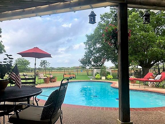 MOTIVATED SELLER is ready to downsize from this charming country home on 4 acres overlooking a backyard diving pool, pasture, pond & riding arena. Home features large rooms, Formal & Casual living & dining areas & a wood-buring fireplace with a wonderfully large hearth area. There is an attached garage + a detached garage, workshop and very nice office, a lean-to styled barn for livestock, tack & feed room, riding arena & a stock tank the seller says has never gone dry. Don't miss the covered patio area and gorgeous backyard pool, the huge & absolutely stunning trees in the backyard, and most importantly pay attention to how warm and inviting this property feels. We just know you will love it as much as we do.
