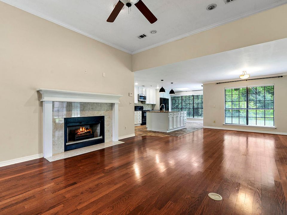BEAUTIFUL, UPDATED FAMILY HOME IN STARK BAYOU SUB. CLOSE TO SCHOOLS, ENTERTAINMENT, PRIVATE QUIET STREET. THIS OPEN FLOOR PLAN FEATURES A COZY FIREPLACE IN THE GREAT ROOM, AND A HUGE ISLAND IN THE KITCHEN WITH TONS OF LANDING AND PREP SPACE. ALSO A BAY WINDOW WITH A BREAKFAST NOOK! ALL APPLIANCES REMAIN WITH THE HOME. SPLIT FLOOR PLAN WITH MASTER SUITE ON ONE SIDE AND TWO LARGE BEDROOMS AND BATH ON THE OTHER. TWO COVERED PORCHES FRONT AND BACK. VERY WELL KEPT AND LUSH LANDSCAPED YARD. CALL TODAY FOR YOUR PRIVATE TOUR!