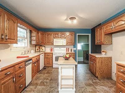 Estate. One level brick ranch. Sand and finish hardwood flooring. Large Eat-in Kitchen. Separate Living room and Den with Buck Stove. Large laundry room. Hardwood under carpet in all bedrooms. Rocking chair covered front porch. Large patio for outdoor entertaining. Large level lot. Carport & large outbuilding.