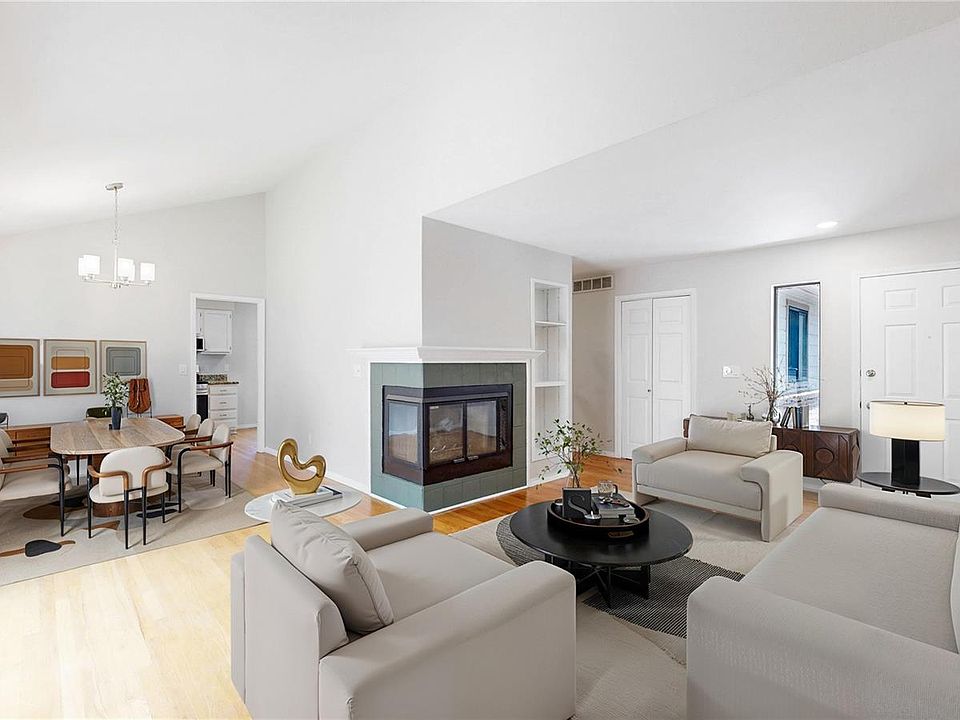 Ranch styleTwo sided fireplacePremium locationPrivate deckFinished garden level basementExpansive primary bedroomQuiet enclave