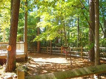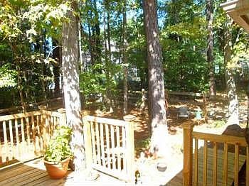 Adorable Ranch style home on fenced, wooded lot! Hardwoods in Kitchen. Family Room with laminate hardwoods, vaulted ceilings, and wood burning fireplace. Formal DR. Master w/tall windows and vaulted ceilings. Master Bath w/vaulted ceilings, walk in closet, double vanity, and tub/shower combo. Front porch and deck. New paint. New HVAC and water heater. New roof in 2007. 1 Car Garage. Community Clubhouse, Pool, and Tennis. A must see!