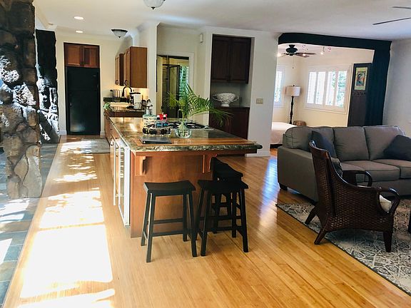 Live the ultimate Lanikai Dream! Enjoy a large private dwelling nestled in a lush garden complete with your own waterfall display through a greenhouse wall! Fully furnished in luxury island style, with 1000+sf of living space, plus ample garage space for kayaks, surfboards or other beach toys as well as 2 tandem parking spots, AC, washer/dryer, gas stove, wine cooler, cozy lanai to enjoy the beauty of Lanikai. Located in the heart of Lanikai and just a quick walk to the white sands, calm blue ocean, and inviting Mokuluas. Must see for yourself! Just $2800/month- paradise is found. Available now! Utilities included
