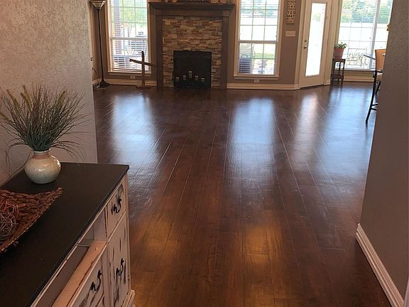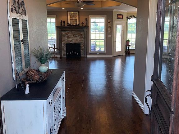 Move-in ready home on 2 spacious acres, and just a short distance from the lake! Gorgeous new flooring installed in 2017. Stainless steel appliances and granite counter tops. Crown molding and vaulted ceilings. Walk-in closet & jacuzzi tub in primary bed/bath. Warm, inviting fireplace and open floor plan, perfect for entertaining. Large utility room has extra storage cabinets and a separate sink. Newer fire pit out back, perfect for relaxing evenings on the patio! 1-Yr warranty offered by seller.