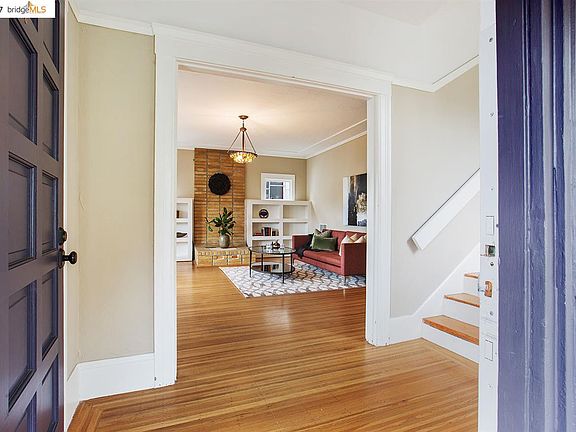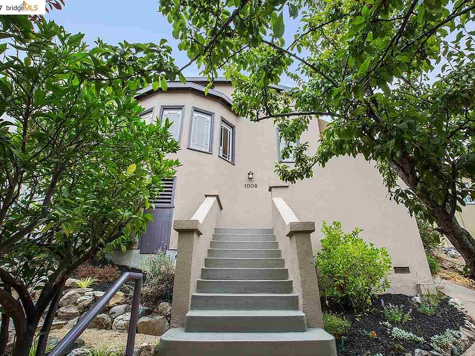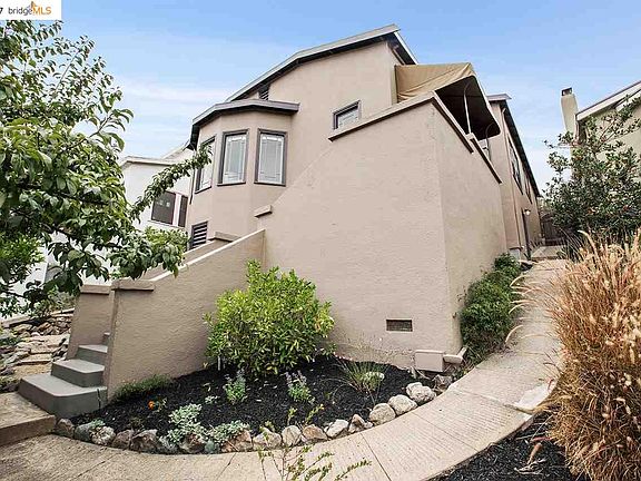 This split-level 1920s bungalow sits on a hill surrounded by plum, orange, apple, fig, lemon, guava, and lime trees. Thoughtful owners have lived in and improved this home for 12 years. Many charming original details remain, while smart upgrades increase livability and energy-efficiency. The entranceway has a sweet, sunny window nook and leads into a large living room with beautiful bay windows. French doors open to a sunny dining room with its original display cabinet. The kitchen features a Bertazzoni gas range and hood, a convenient laundry area and a bright breakfast nook that opens to a large, tiered backyard. There's a separate entrance to a basement space ideal for storage or a small workshop. A swinging portrait hides additional storage space. Minutes to Lake Merritt, 19th Street and MacArthur BART stations, as well as Lakeshore, Piedmont, and Grand Avenue shops and restaurants. Architect's plans for potential expansion are available.