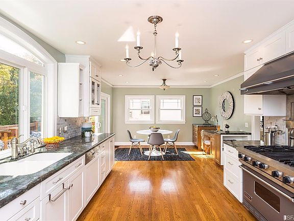 This 1928 Spanish Revival has been thoughtfully upgraded with all required permits. The spacious chef's kitchen/family room has a Viking gas range/cooktop/grill with an infrared broiler and commercial hood. The dishwasher is Bosch, the brand new floors are hardwood. Double sliding doors lead directly to the outdoors and the redwood deck, perfect for morning breakfast. The intimate, relaxing back garden has maple trees, mature plantings, a lawn and brick patio. Freshly painted inside and out in decorator colors, this split level home has 2BD/1BA, professionally refinished hardwood floors, a wood burning fireplace, remodeled bathroom, numerous double pane windows, an efficient gas Trane furnace. Award winning East End schools.