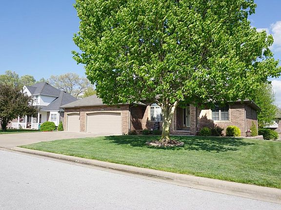 Apple Creek is a great neighborhood for walking and this awesome brick walkout is move-in ready. It just sparkles inside and out with beautiful hardwood floors(2016), updated kitchen with breakfast bar and solid surface countertops(2015), 2 gas fireplaces, vaulted ceilings and so much more. The master suite features a sumptuous bath with double sinks, his & her closets, shower & jetted tub. The huge family room has a wet bar, a pool table & entertainment center that stay. The huge John Deere/workshop(33.9x15) has built-in cabinetry and there is an abundance of storage. Add'l improvements include Deck 2014, all new cabinet & door hardware, light fixtures & fans(2017), new counter & flooring in Laundry room, and 90% efficient furnace, new counter & fridge in wet bar.