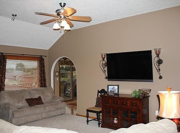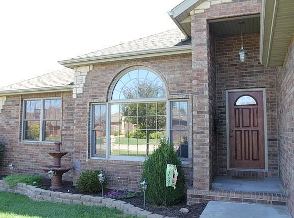 Excellent ALL BRICK walkout basement with terrific views in Ozark Schools. The quality family home was built in the well kept subdivision of Barrington Springs, complete with community center & inground swimming pool for the association. To begin with, the homes curb appeal is sharp..sprinkled yard, level driveway, brick & stone features, 3 car garage, privacy fence, dark stained deck..& great views. Inside, the home is warm & inviting, full of neutral colors, beautiful hardwoods, corner fireplace, archways, & tons of natural light. As for the kitchen...corion countertops, stacked cabinetry, breakfast bar, & large pantry. Excellent. The split floorplan offers a huge master bedroom, ready for a wall mount TV, good size bathroom...complete with walk-in shower, corner jetted tub, & good sized walkin closet. Downstairs flows great..offering a wet bar, corner fireplace in the family room, an office, rec room, two more beds & full bath, & John Deere room. This is a must see. Call today!