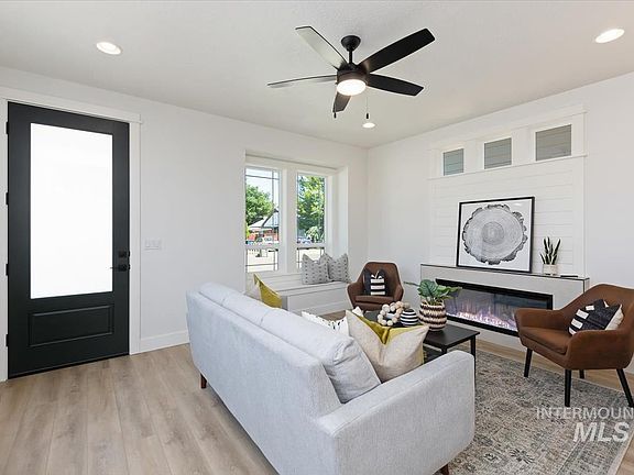 Welcome to Whitewater Commons! Incredible opportunity to own a beautiful cottage style home built by Downey Construction in North Boise! Main floor master suite! Master bath has dual vanities, a walk-in tiled shower, a walk-in closet and door to access the back yard. High end quality finishes with quartz counters, LVP flooring and tiled floors and tile surround in the bathrooms. The great room has a cozy fireplace. Kitchen has stainless steel appliances, ample cabinet space with pull out shelving, custom tile backsplash, quartz covered peninsula with breakfast bar and a pantry. Upstairs you will find a 2nd master bedroom and another bedroom and bath. Enjoy the outdoor living with covered patio, extended cement pad with room for a firepit, and a roll-up garage door which creates a perfect entertaining area for your BBQs. A 2-car detached garage has attic access to a bonus area that is insulated w/lights and outlets. Walking distance to Quinn's Pond, Whitewater Park and Boise River. Minutes to downtown Boise.