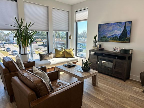 Enjoy modern luxuries in this 2 year old like-new townhouse in the Brooklyn Arts District, Wilmington. Experience downtown living with your own 2 car garage, elevator and private rooftop. The first floor is a studio or office space that has an abundance of windows. Located on the end corner, you would have great exposure for your business or studio with off street parking for clients. This location is zoned CBD and would be the perfect location to run a business or studio. If used as personal space, the shades pull all the way down for complete privacy. From there, you can take the stairs or enjoy the convenience of a private elevator to the 2nd floor which includes the primary suite with a luxurious bathroom, and second bedroom, both with large closets and ceiling fans. Also included on the second floor is a LG smart stackable washer and dryer. The third floor is a spacious open concept plan including living room, dining room, and gourmet kitchen with large island and private patio. This convenient end unit comes with many upgrades including custom window treatments for maximum enjoyment of the beautiful Wilmington views and sunsets. Other upgrades include, french door dual-zone wine refrigerator, microwave drawer, quartz countertops with a waterfall edge, smart Samsung gas range, Family Hub smart refrigerator, smart touch control kitchen faucet, and LVP flooring throughout. Included for security is an Arlo video doorbell, MyQ garage opener and Arlo security cameras with motion sensor lighting you can control from your phone. This location is convenient for walking to The Wilson Center, Live Oak Park and Amphitheater, the River Walk, plus numerous dining establishments. The rent includes water, sewer and trash as well as annual pest control. Renter is required to have renters insurance. Pets are negotiable with pet deposit Owner pays water, sewer, and trash. Also yearly pest inspections. Tenant is responsible for electricity, gas, and wifi and should carry renters insurance. No smokers and two pet maximum with a monthly pet fee.