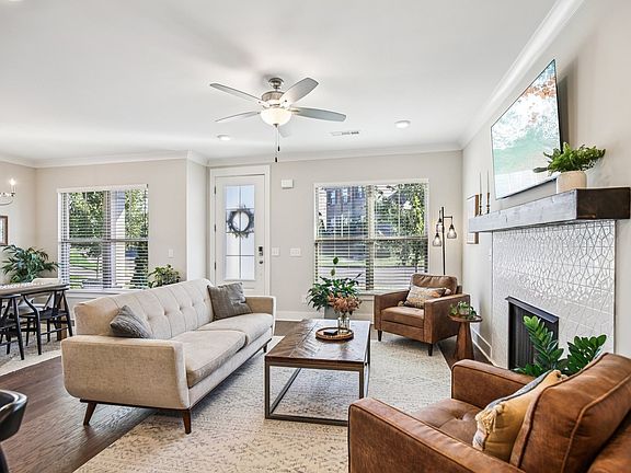 Welcome to this stunning all-brick, low-maintenance home located in the highly desirable Kennesaw Farms neighborhood. From the moment you step inside, you'll be greeted by an abundance of natural light that fills every room. This home features a main-level master suite, two additional bedrooms, and a versatile bonus room upstairs. Above the three-car garage, a large unfinished space offers endless possibilities—perfect for creating a media room, teen retreat, or in-law suite. The kitchen boasts a large island, stainless steel appliances, quartz countertops, and a stylish tile backsplash. Throughout the home, flooring has been thoughtfully upgraded: plush carpet in all bedrooms and the bonus room, elegant tile in the bathrooms and laundry room, and rich wood floors in the main living areas. A floating mantel adds a modern touch above the fireplace, enhancing the cozy living space.