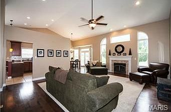 This home is a must see! NOT YOUR ORDINARY SUBDIVISION TRACT HOME. Custom built great room ranch with 3 car garage on a level cul de sac lot has it all and offers approx 3000 sq ft of living space. Great value for this quality and so much space. High end finishes, tile baths, wood floors, vaulted ceilings, designer lighting, iron spindle staircase, huge patio, fenced yard, irrigation system, architectural shingle roof and a spectacular lower level. Dining room features angle bay floor to ceiling windows with French door to patio. The expansive great room has palladium and transom windows above the gorgeous fireplace with open stairway to lower level. Master suite with huge walk in closet, vaulted ceiling, double vanity, whirlpool tub and tiled shower. Big bright, eat in kitchen with breakfast bar and tile floor. Great home for a growing family.