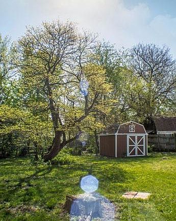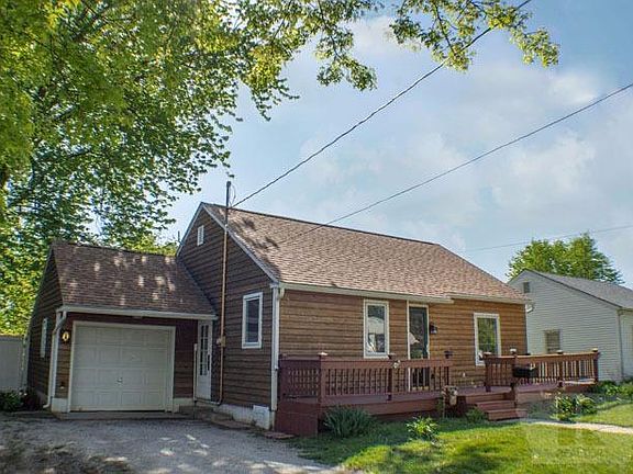 Home with loads of character and charm - starting with the open front deck - enjoy the private back yard with your - picnic table and fire pit - the garden shed is surrounded with a variety of flowers and bushes. Home has cedar siding - roof was replaced in 2012 - single attached garage with a walk-in door. Large living room features hardwood flooring, fresh neutral paint, and picture window. Family room is in the rear of the home - very unique - metal ceiling, knotty pine siding on the wall - stone accent wall and natural light from all of the windows. Kitchen has updated cabinets with gas stove and refrigerator staying. Laundry is in the lower level - washer and dryer are included with the sale - built in storage shelves will remain. 2 Bedrooms with hardwood floors - 1 full bath with large linen closet - updated sink and stool. Home is in a great location - near William Penn University and the Walking Trail.