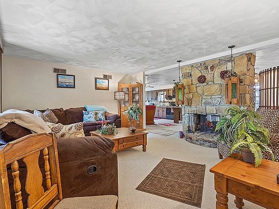Sprawling brick ranch nestled on a large lot. Mature trees, landscaping & a covered front porch welcome you upon arrival. Over-sized, open concept living area. Spacious living room features a bay window, neutral tones & a floor to ceiling stone, wood burning fireplace! Cozy dining area has sliding doors to rear sun-room. Large kitchen boasts plenty of wood cabinetry, newer counter tops, stone back splash & comes equipped w/ appliances. Just off the kitchen is a Spacious family room w/ double windows. 3 generous sized bedrooms w/ ceiling fans & ample closet space. Master w/ en-suite. Full bathroom has a tub/shower combo &newer vanity & flooring. So many possibilities in the ready to finish basement that includes a pool table! There is storage galore. The heated Sun-room is simply amazing and will surely be a place to relax and entertain. It features a vaulted, wood beamed ceiling w/skylights, attractive stone flooring & beautiful views to the yard.