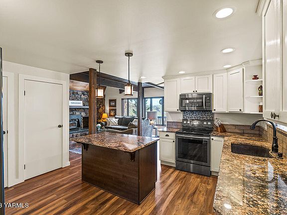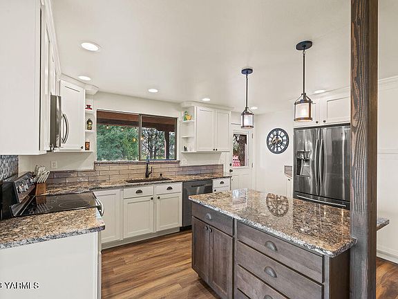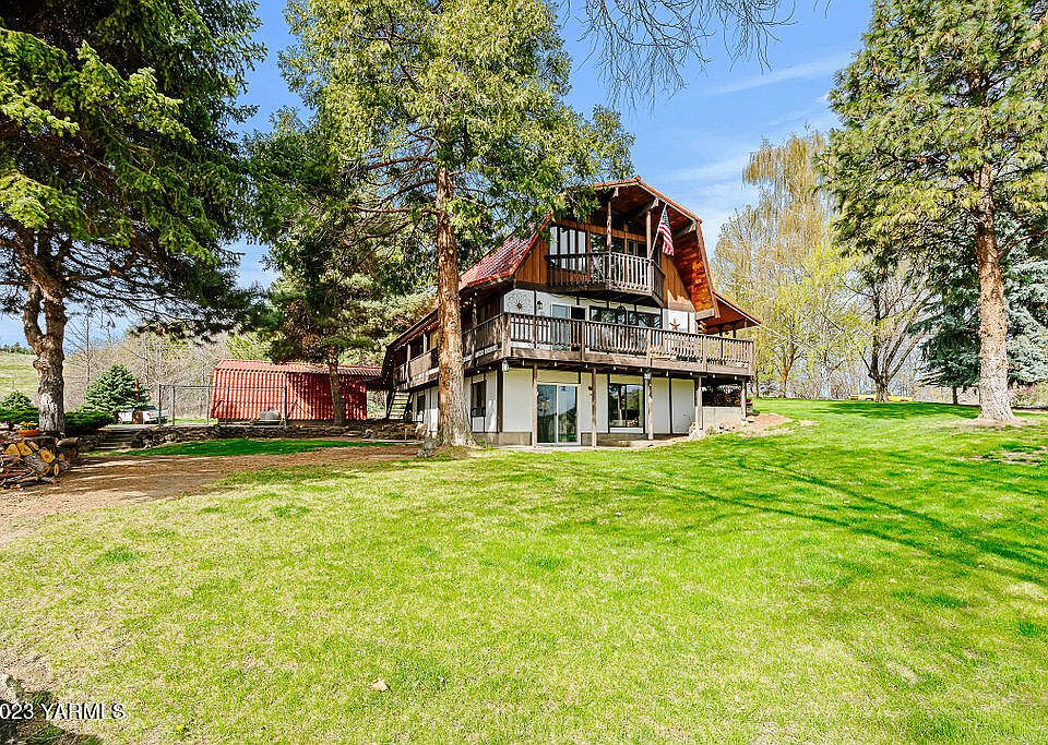 Wonderfully unique chalet perched within the trees overlooking Cowiche Canyon, feels as though you are in the mountains but just a short drive to shopping, medical and area restaurants. Home has 4 bedrooms, 3 bathrooms 2748 sq. ft. Rustic feel with many great updates, including new kitchen and bath on main level, upstairs is an updated primary bath and second newly added laundry room. Open vaulted ceilings in living room, loft area and dining room. Lower level hosts cozy family room, 4th bedroom, 3rd full bath, laundry room and new kitchen. This level is a perfect move in ready, mother-in-.law suite or could be a rent ready VRBO. This home has so many possibilities and is set on a large 2.29 acre lot. Property is within the Naches School District.