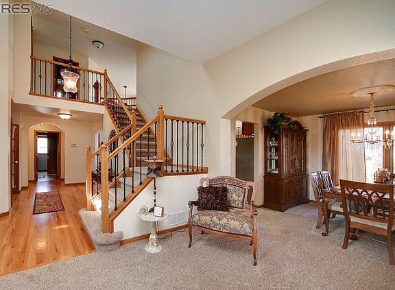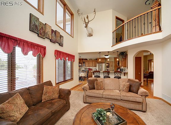 SE Ft. Collins, easy access to I25, great schools, parks nearby. Upgraded, updated 2-story. Views, 1-acre, abundant mature landscaping, raised gardens, pond w/ waterfall, underground pet fence, gas grille, gas fire pit, expansive patio, pergola, perfect for entertaining. 3-car garage + lrg 2-bay heated RV garage, 12' doors. Remodeled kitchen, rustic alder cabs, granite. Dramatic 2-story FR, gas fireplace, warm oak flooring, newer carpets. MBR suite, 5pc bath, jetted tub, lrg cedar lined closet.